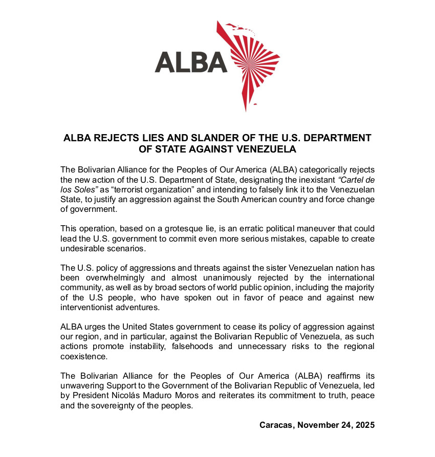 ALBA-TCP rejects lies of US State Department against Venezuela