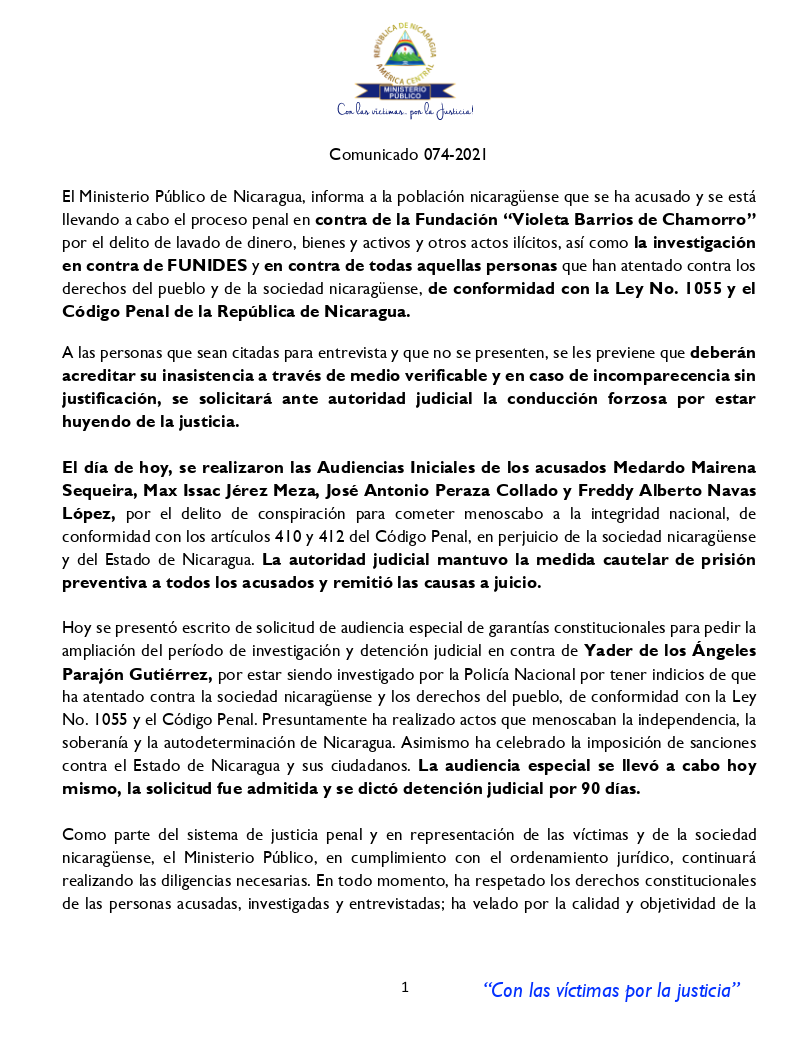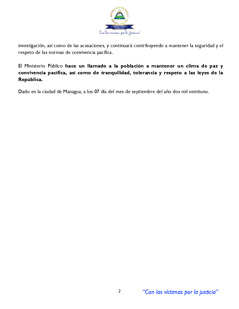 Declaraciones de Rosario, Vicepresidenta de Nicaragua,