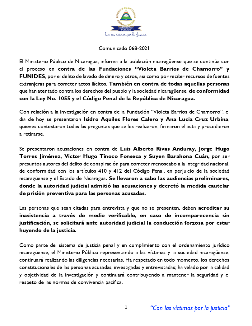 Declaraciones de Rosario, Vicepresidenta de Nicaragua,