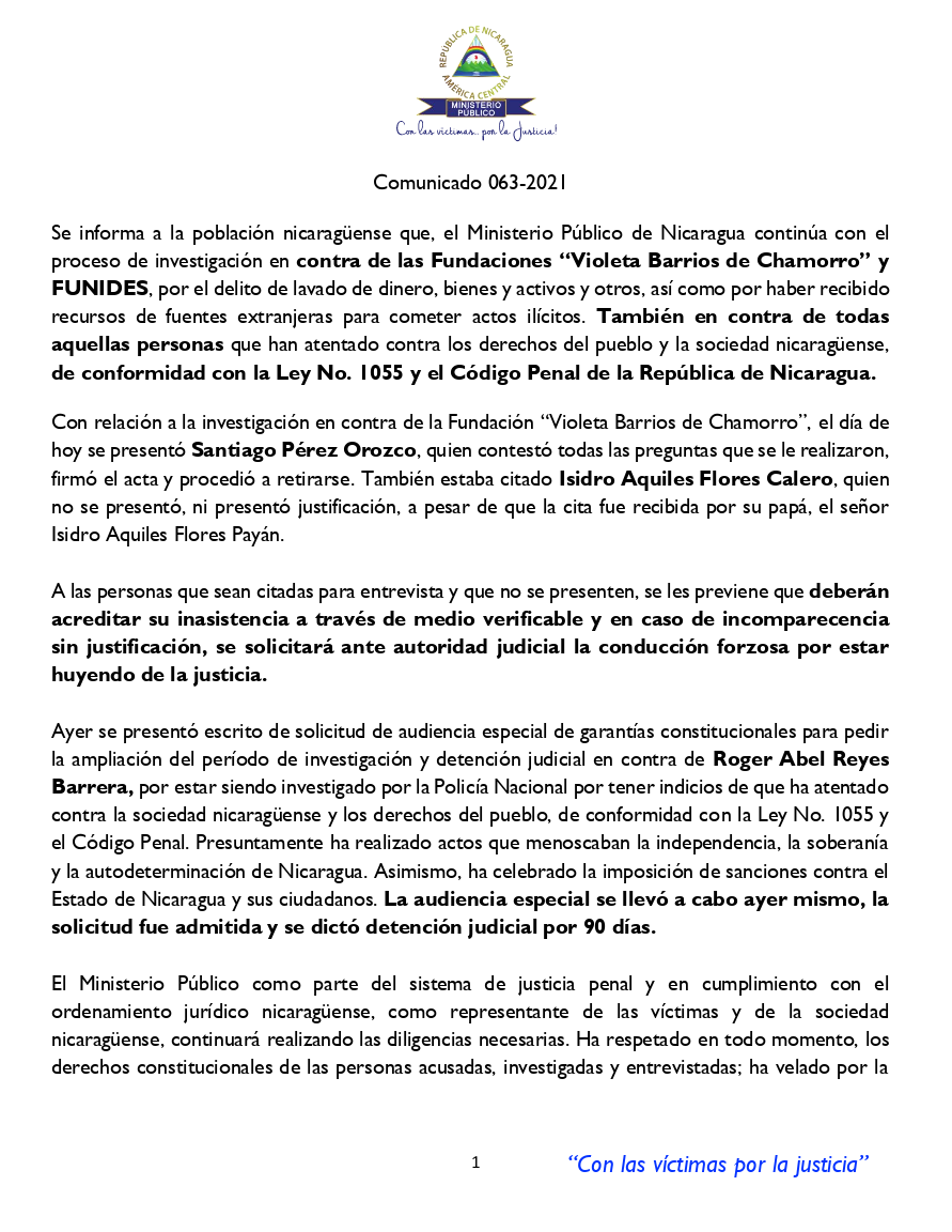 Declaraciones de Rosario, Vicepresidenta de Nicaragua,