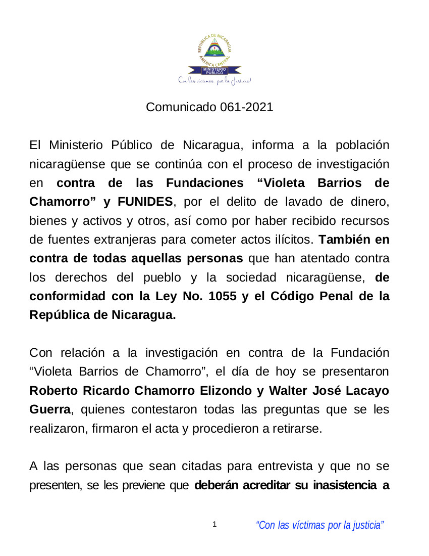 Declaraciones de Rosario, Vicepresidenta de Nicaragua,
