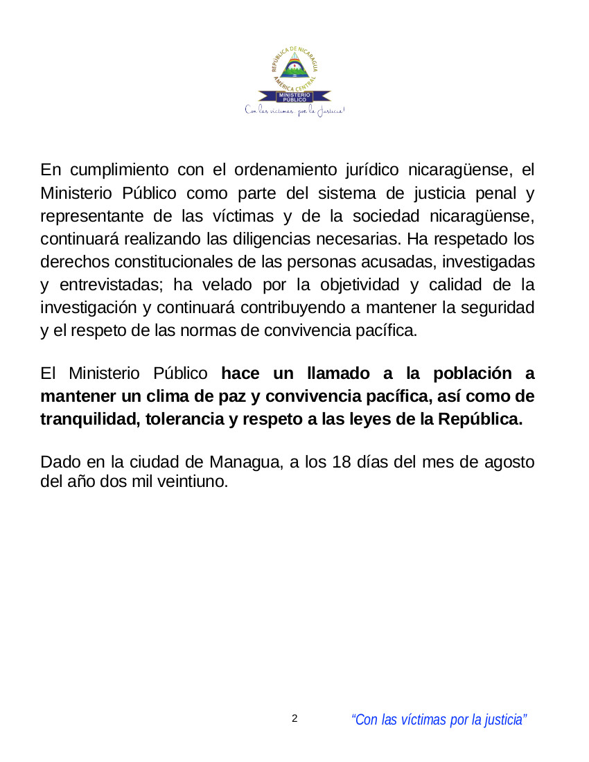 Muy buenas tardes, Compañera; buenas tardes, Queridas Familias de esta Nicaragua nuestra, Bendita Siempre, Digna Siempre, Soberana Siempre. Esta Nicaragua nuestra, Libre, Libre, Libre !