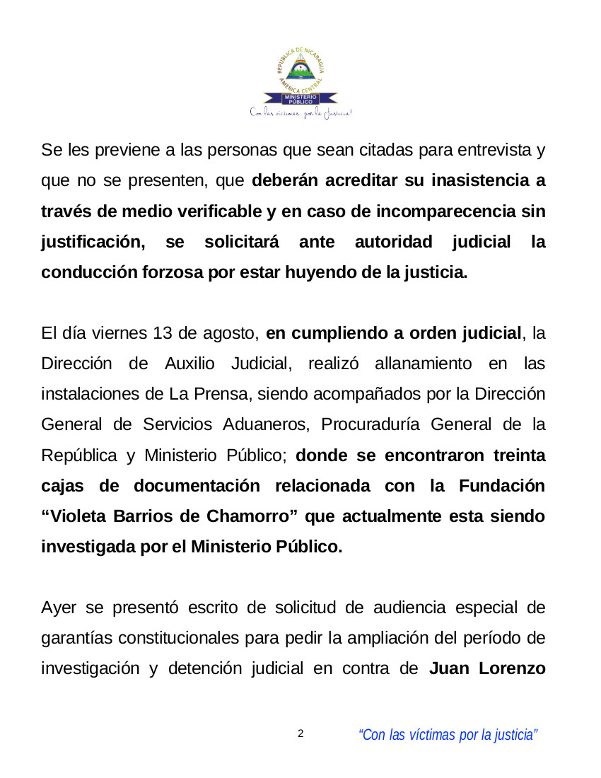 Declaraciones de Rosario, Vicepresidenta de Nicaragua,