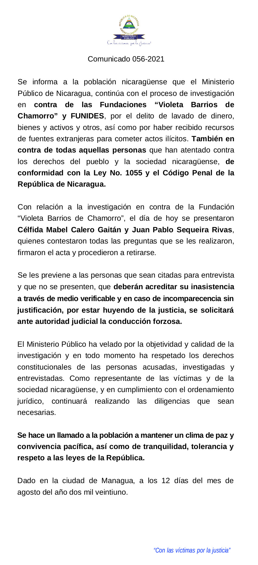 Declaraciones de Rosario, Vicepresidenta de Nicaragua,