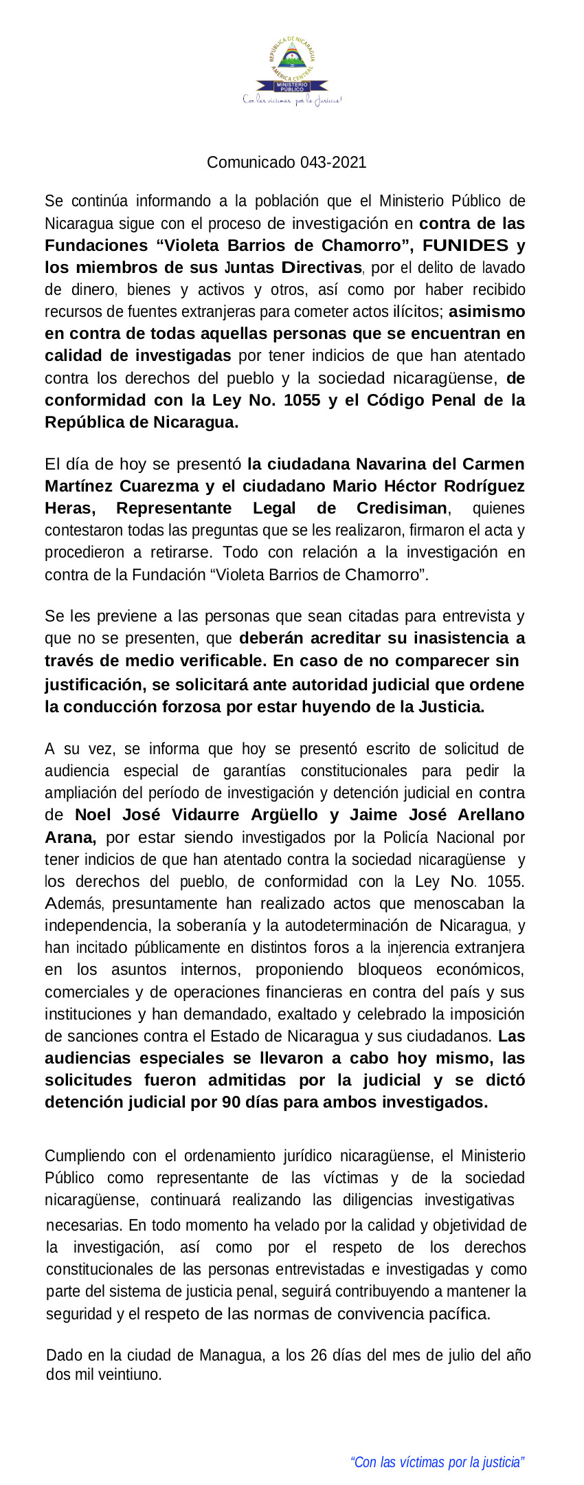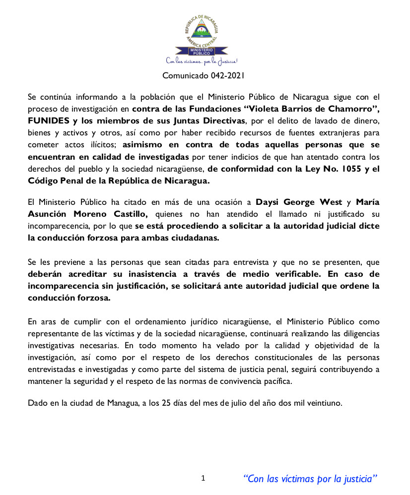 Managua, 25 de Julio, 2021