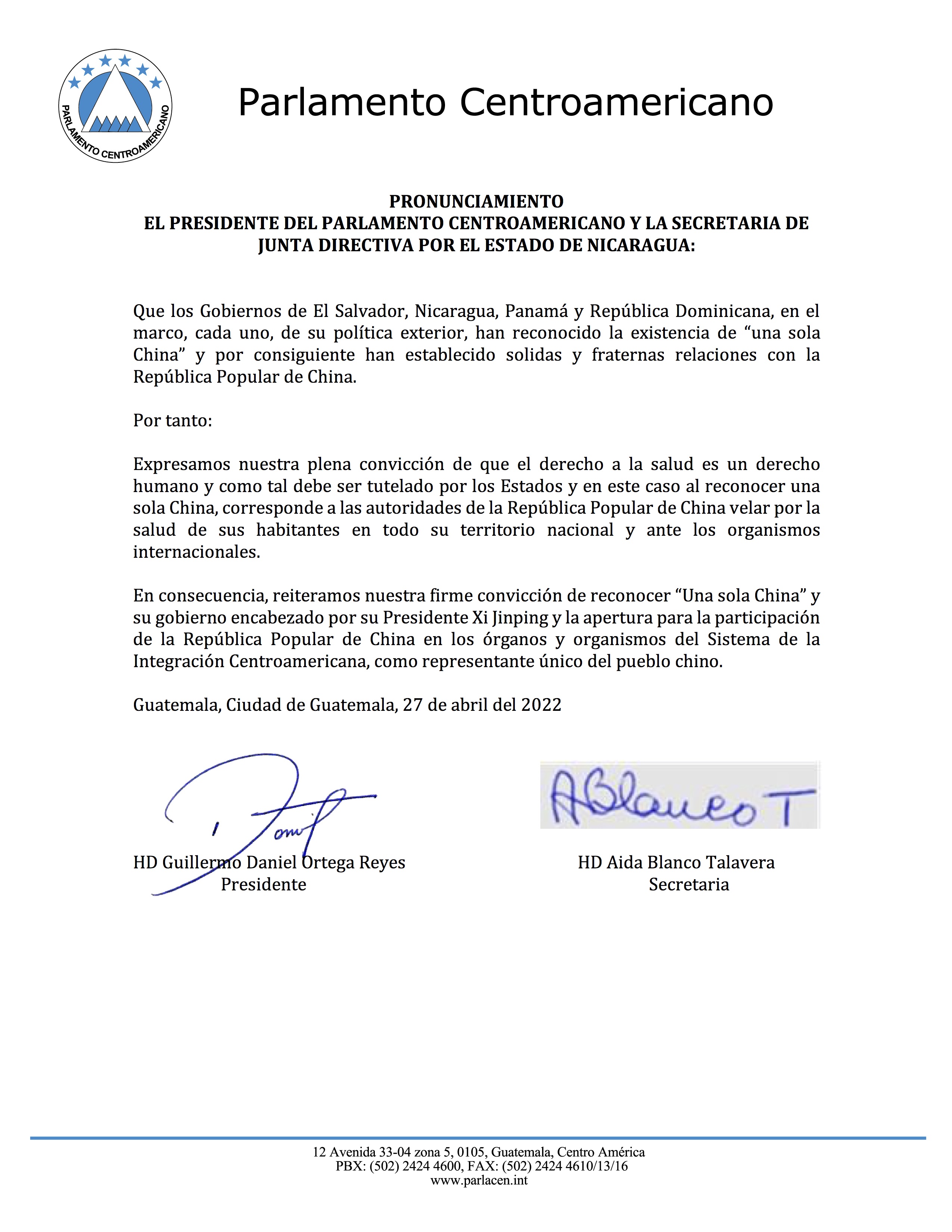 Declaraciones de Rosario, Vicepresidenta de Nicaragua,