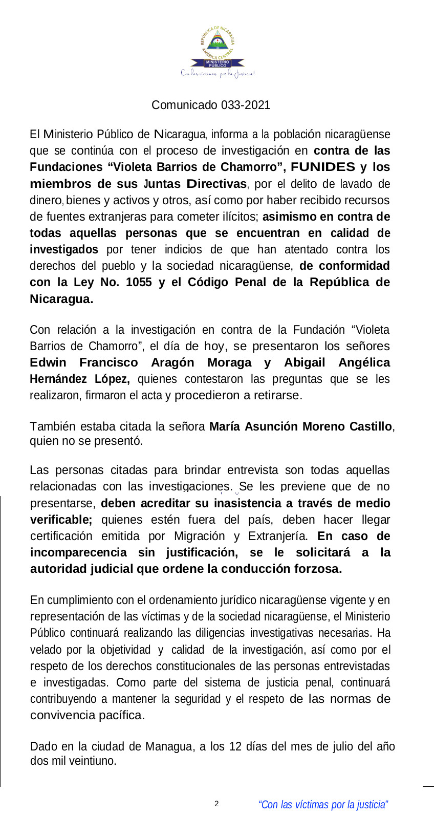 Declaraciones de Rosario, Vicepresidenta de Nicaragua,