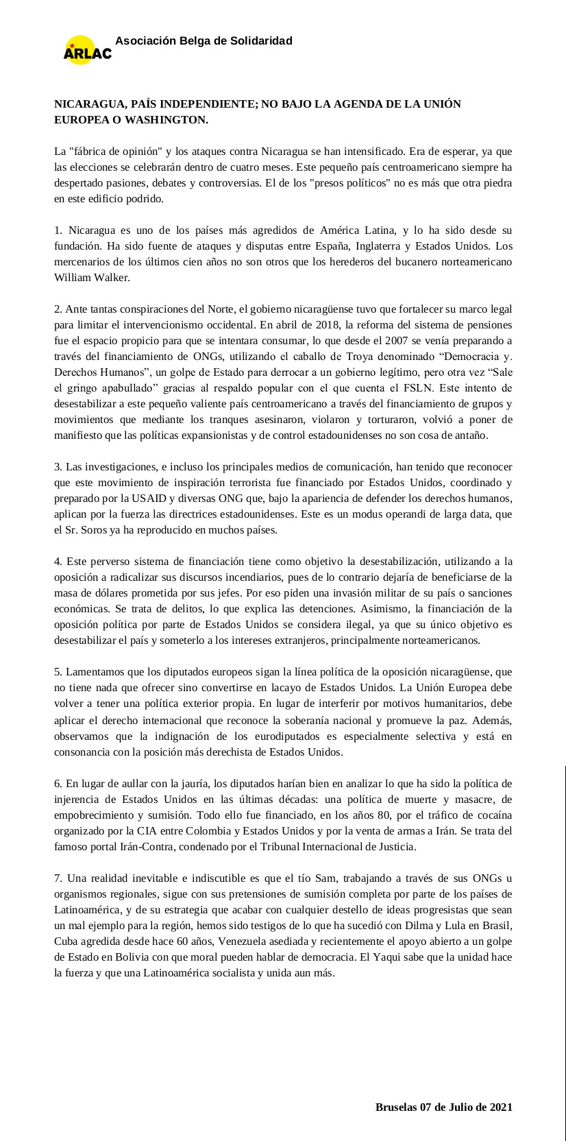 Your organization is invited to sign on! We call on the United States to stop interfering!