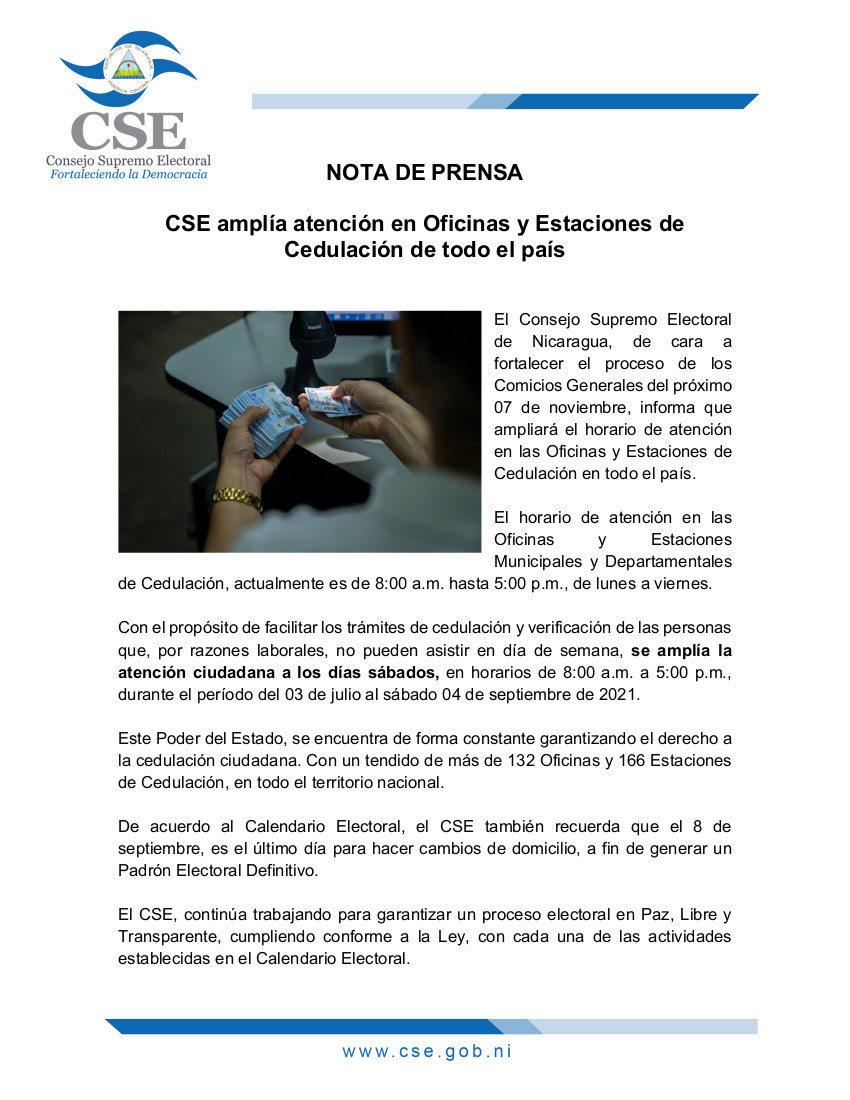 Establecemos comunicación con la Magistrada-Presidenta del Consejo Supremo Electoral, Compañera Brenda Rocha. Muy buenos días, Magistrada.