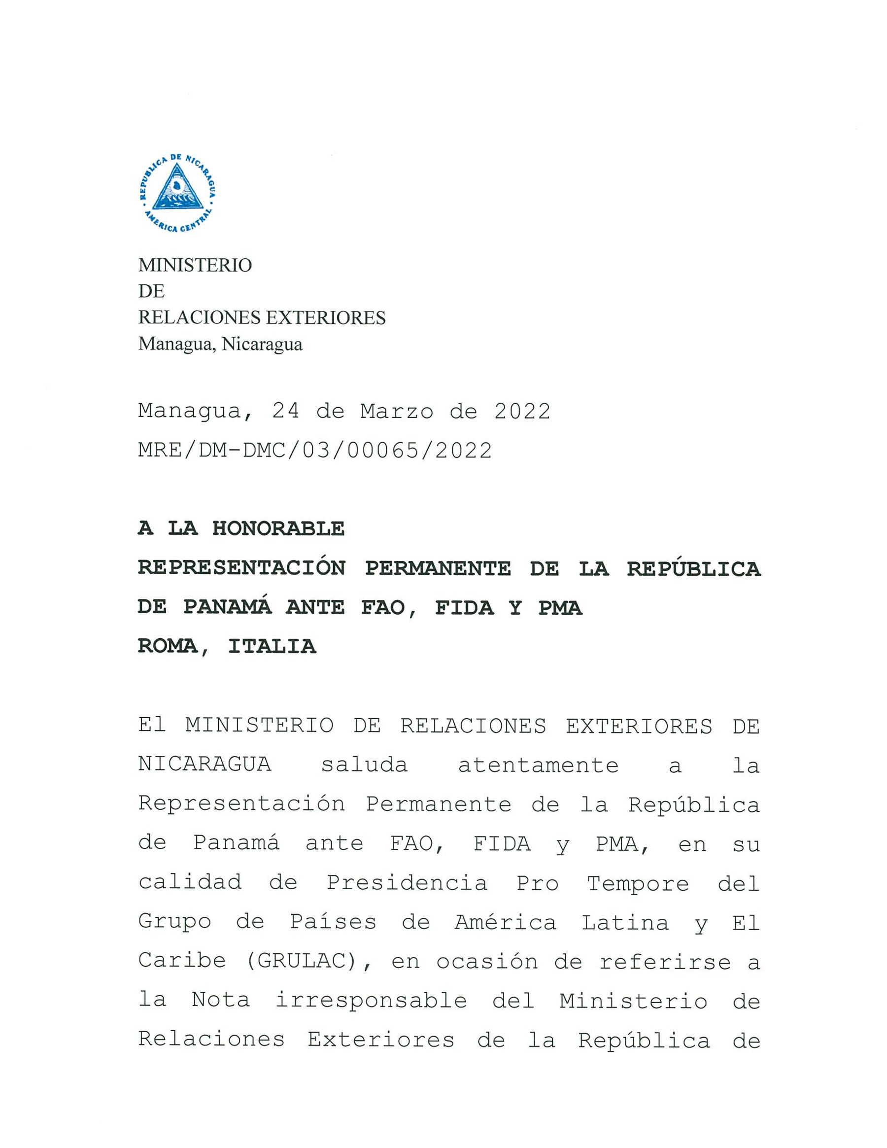PERMANENT REPRESENTATION OF THE REPUBLIC OF PANAMA BEFORE FAO, IFAD AND WFP