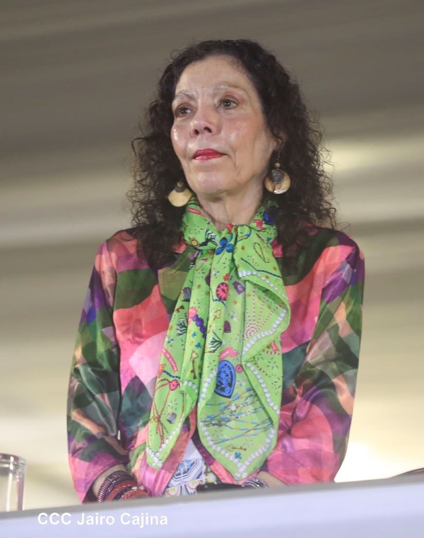 Comandante Daniel Ortega, Presidente de la República y Jefe Supremo de la Policía Nacional; Compañera Rosario Murillo, Vicepresidenta de la República.