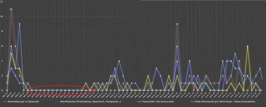 Why suddenly did deaths start to occur again and with much greater frequency after those 15 days? Was it that the "Civic and Peaceful Struggle" without deaths was not having the same effect? To overthrow a government it is necessary not only to have the support of the population but also the support of the international community and the best way to obtain international support is accusing a government of "genocide".